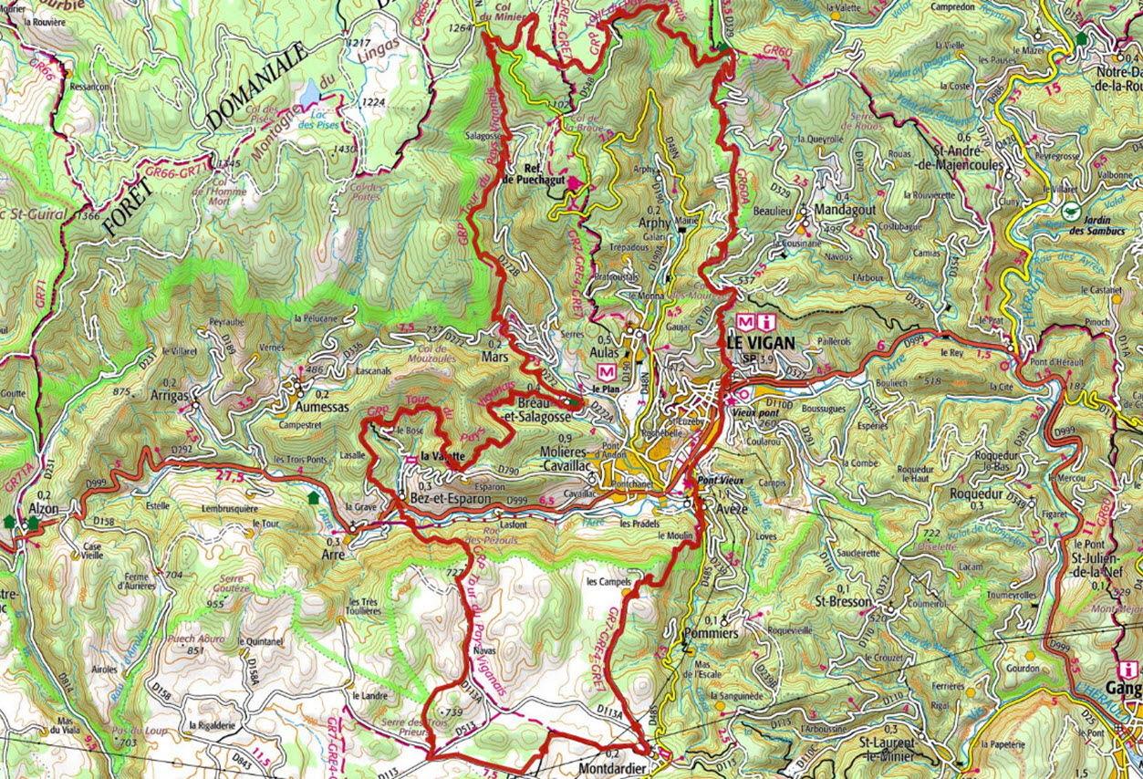 - Le tracé du GRP : GR® de Pays Tour du pays Viganais